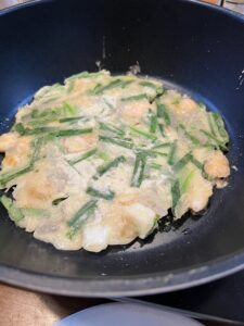 待ってられると思うと料理も嫌になって、簡単にチヂミんいしちゃったよ