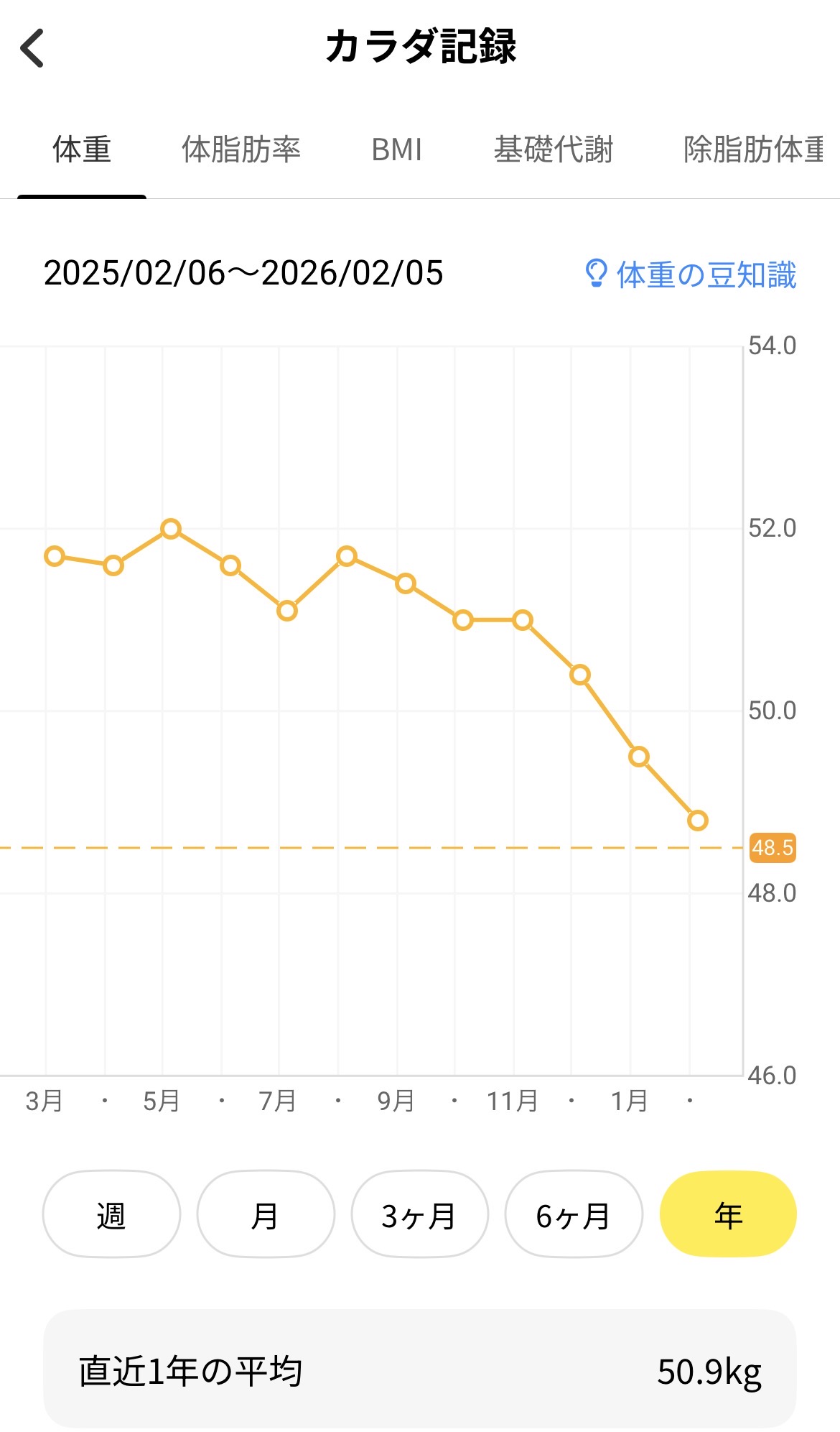 ここ1ヵ月ほどで体重が急に落ちてその後も維持できています。