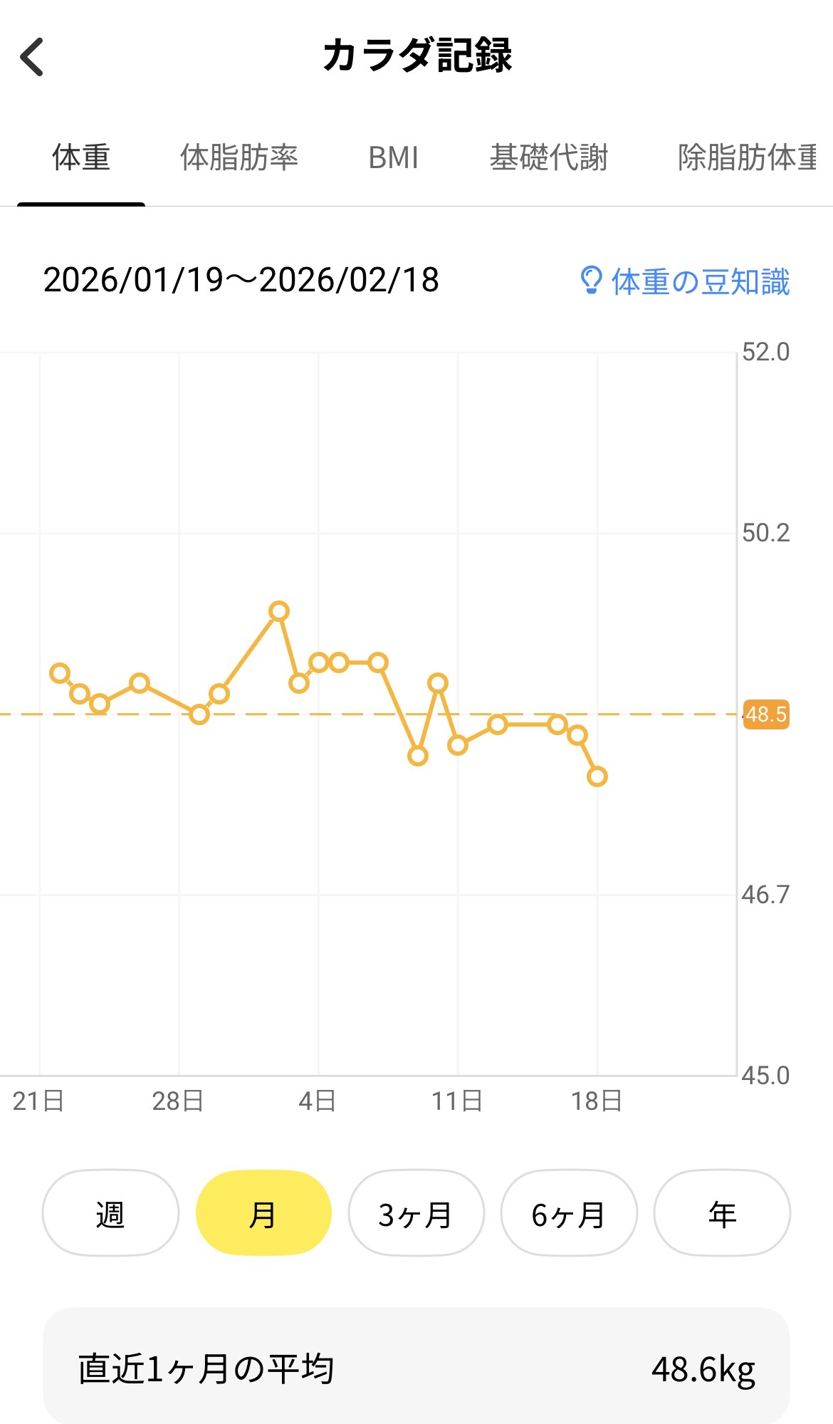 体重もここ1ヵ月維持することができたのですが、これはchocoZAP効果かどうかわからないですが、夜のおやつをやめたことが1番大きいかな。